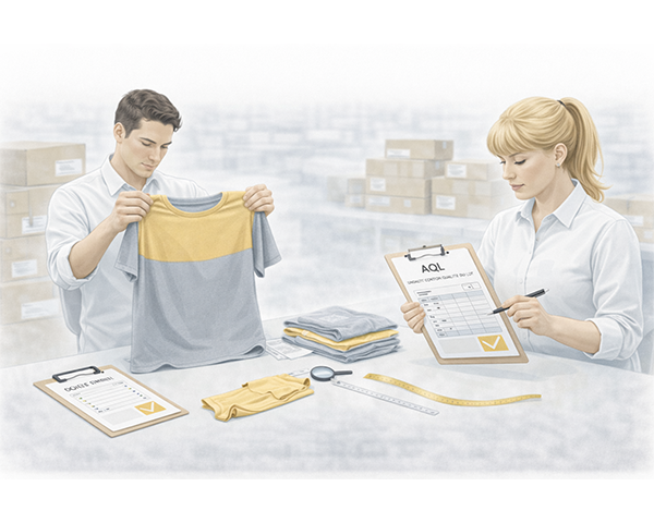 Après conditionnement, les commandes sont soumises à un contrôle AQL conforme aux standards internationaux avant expédition.
