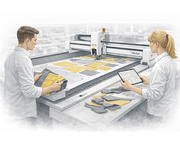 La précision commence ici. Notre unité de coupe combine la technologie Lectra Vector et un contrôle afin de garantir des pièces conformes.